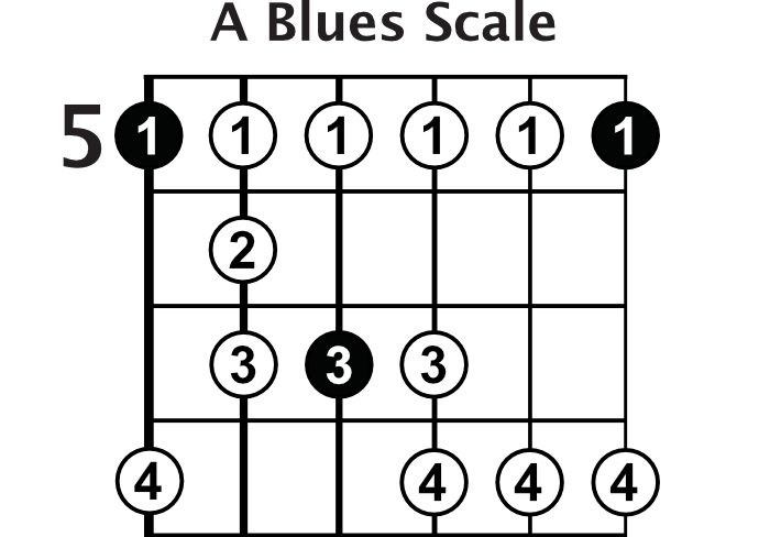 The final essential scale is the blues scale. If you know your minor pentatonic scale, then this one is really easy. All you have to do is add one note. This note is called the flat 5 (or sharp 4) note.