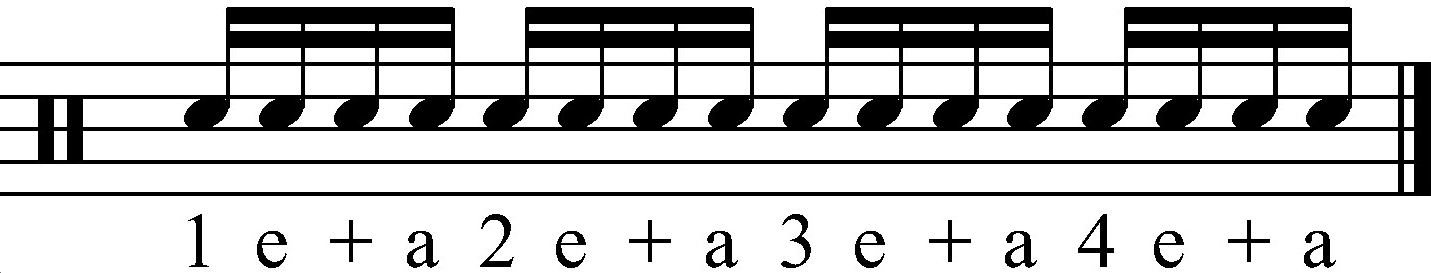 16! And in a piece of drum sheet music this would look and be counted this way: