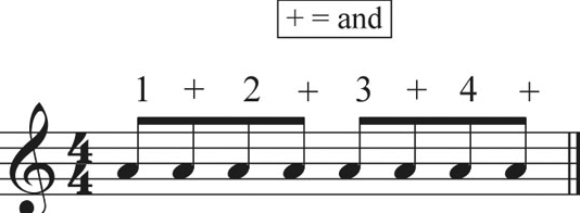 Instead of “1, 2, 3, 4”, we’d now count “1, and, 2, and, 3, and, 4, and”. And hitting on count “1”, we’d now that the eighth lasts exactly until our first “and”.