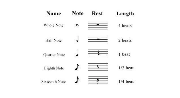 The most important ones are listed below and in order to read drum sheet music you need to be able to distinguish them by the way they appear in the “note” section (circle filled or unfilled; with or without vertical line; with or without tail).